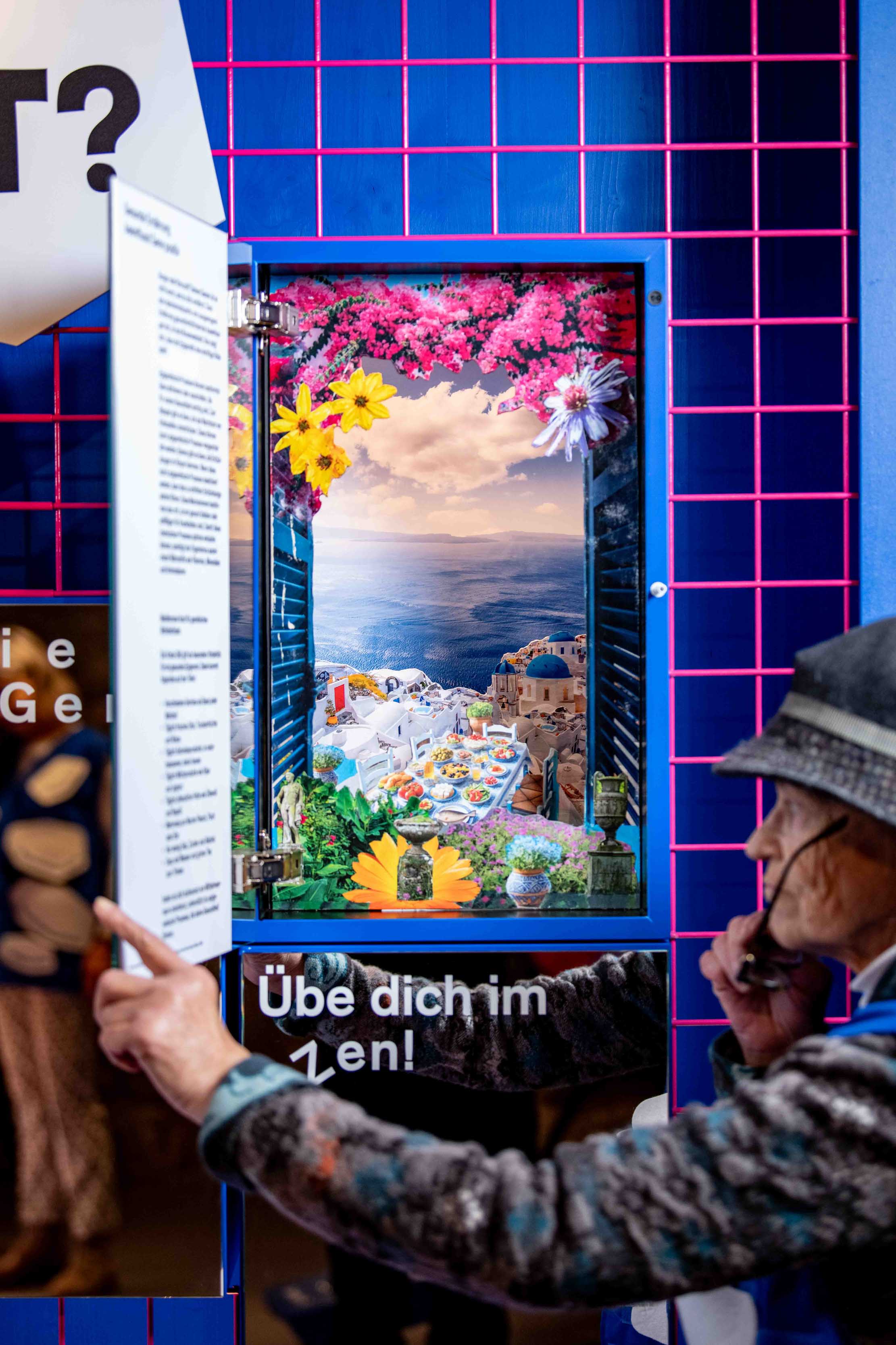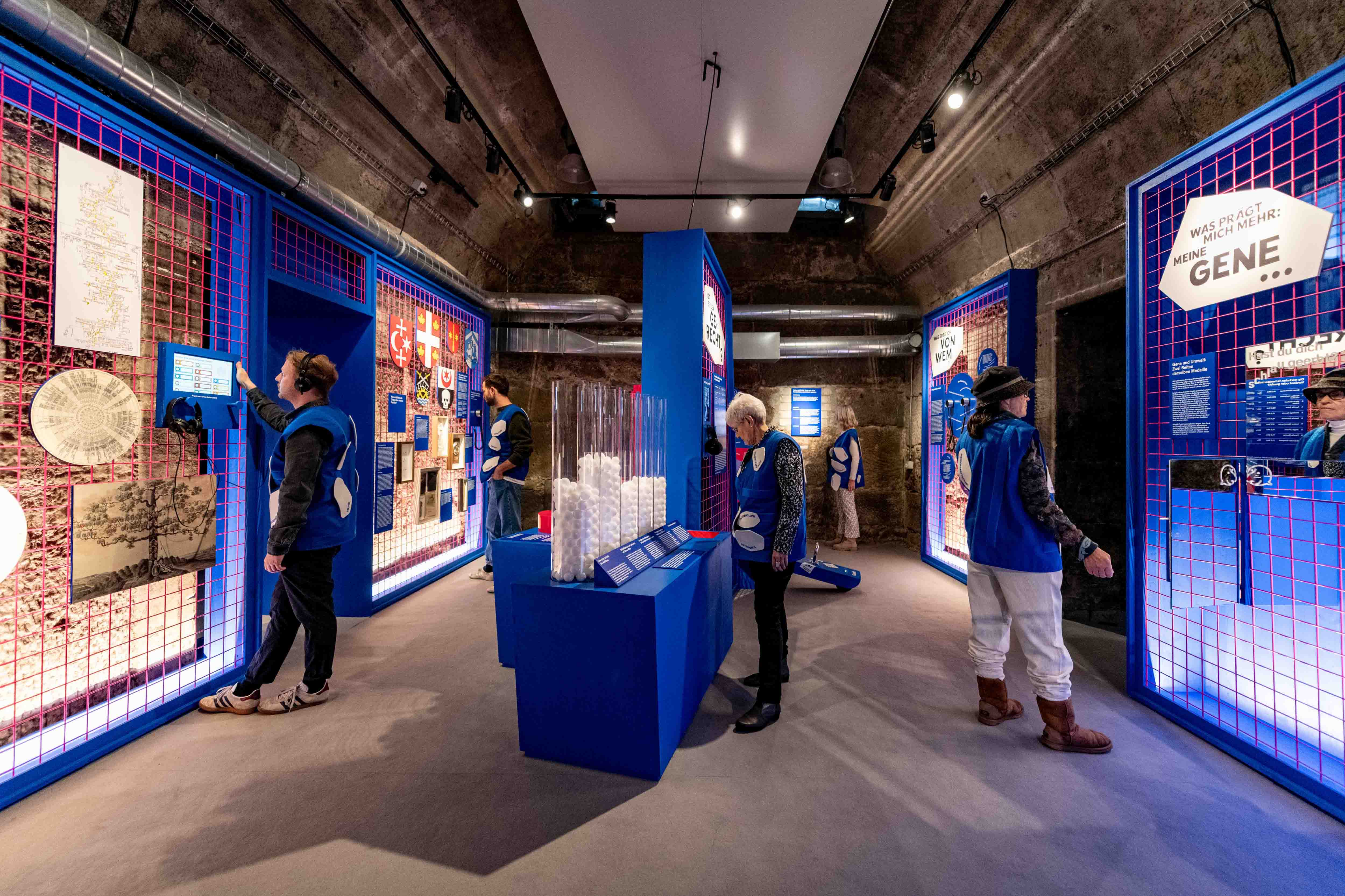 Über die gesamte Ausstellung hinweg interagieren die Besucher:innen mit multimedialen Stationen – von Touchdisplays und Tablets bis hin zu Projektionen und audiovisuellen Inhalten.